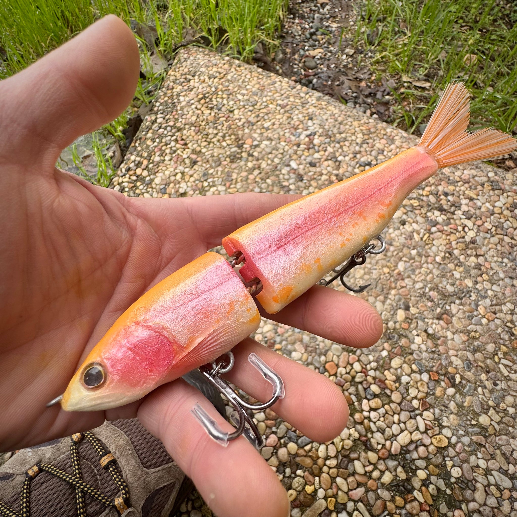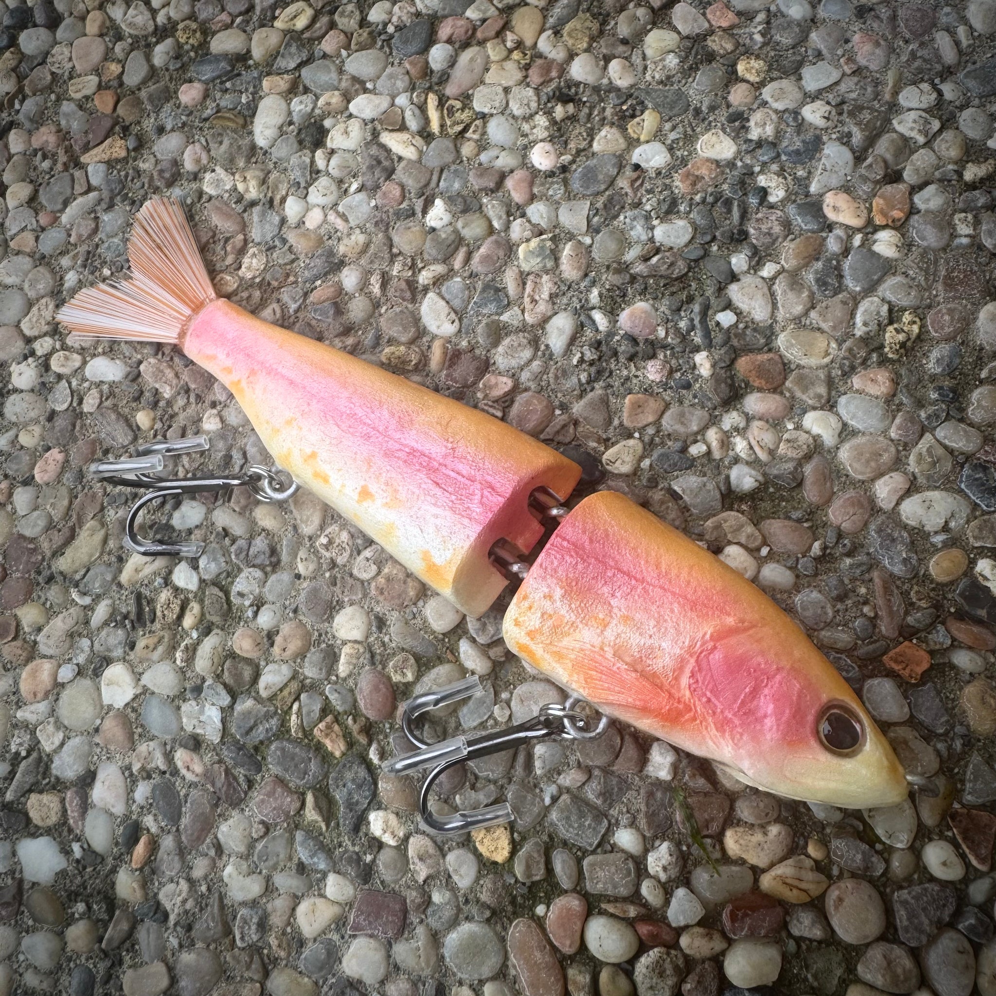 Taking realism close to the limit, the Real Trout is literally a copy of a juvenile trout. Unlike 3d printed $200 baits with wild claims, nothing beats the aesthetics of nature. With its natural features, there are form imperfections which required unparalleled attention to precision in order to perfect its swim action. Dozens of hours were invested in obtaining balance and high performance swim. This relatively new model has already found its way locked into the lips of dozens of large stripers on the Sacramento River. It's even landed some record-level pike in Canadian waters!
